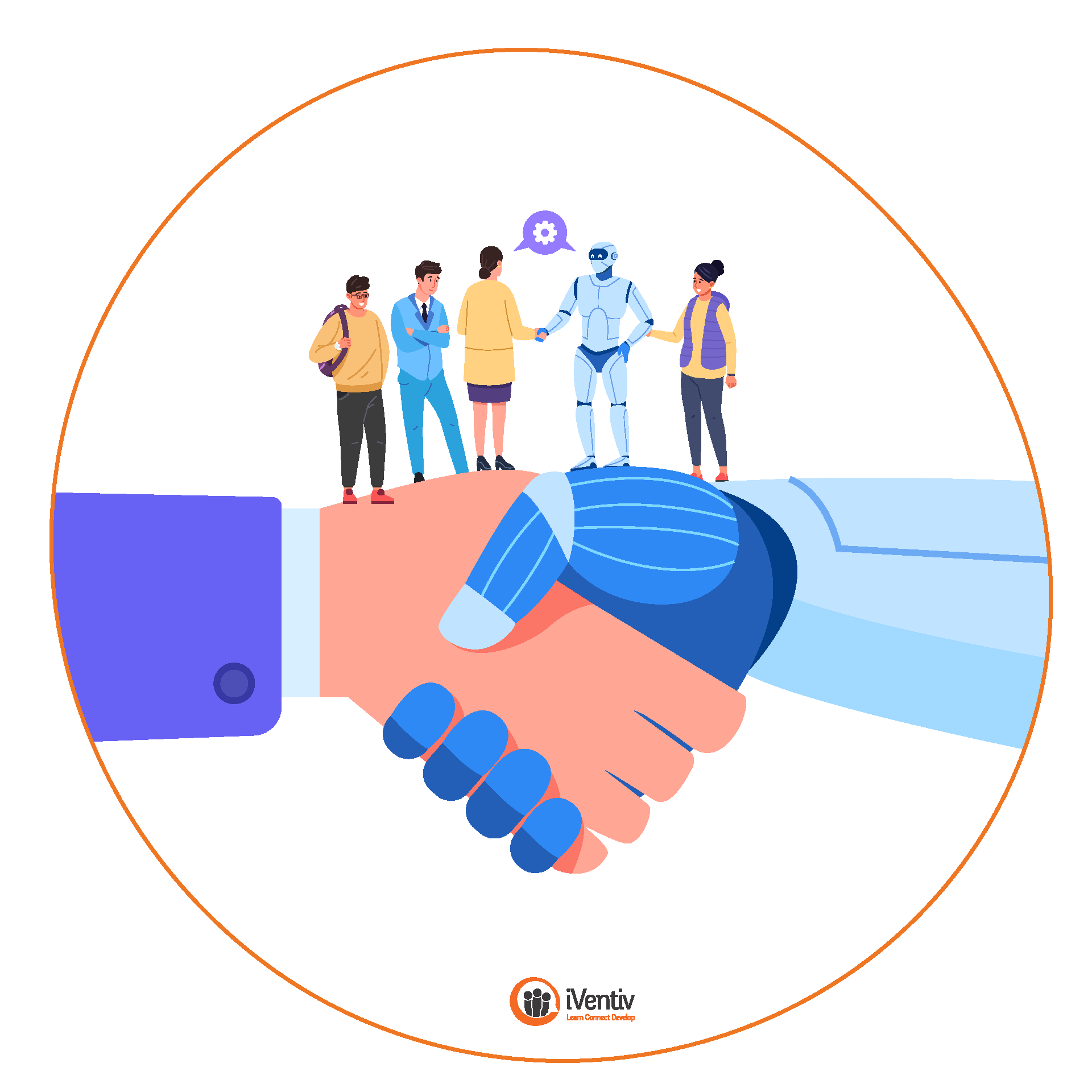 human and machine shaking hands
